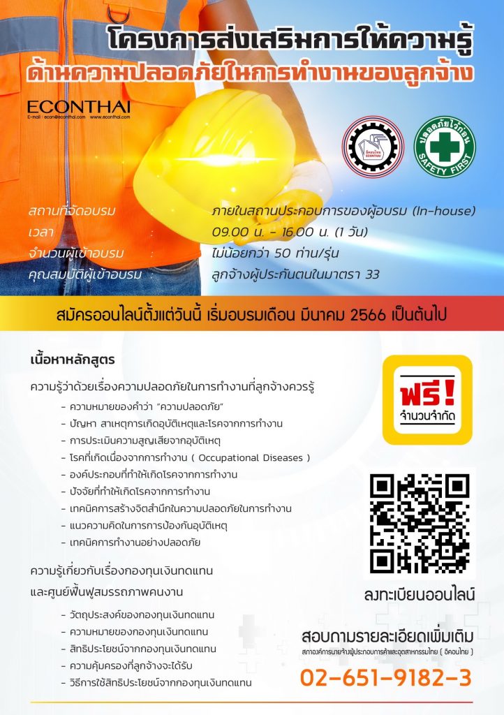 ✅ โครงการส่งเสริมความปลอดภัยในการทำงานสำหรับลูกจ้าง ประจำปี 2566( เจ็บป่วย ประสบอุบัติจากการทำงาน กองทุนเงินทดแทนจะดูแลท่าน โดยมีเงื่อนไขการเกิดสิทธิ อย่างไรบ้าง? พร้อมทั้ง ความรู้เรื่องการสร้างจิตสำนึกให้พนักงานตระหนักถึงความสำคัญของการปฏิบัติตามกฎระเบียบด้านความปลอดภัย ของบริษัทอย่างเคร่งครัด)