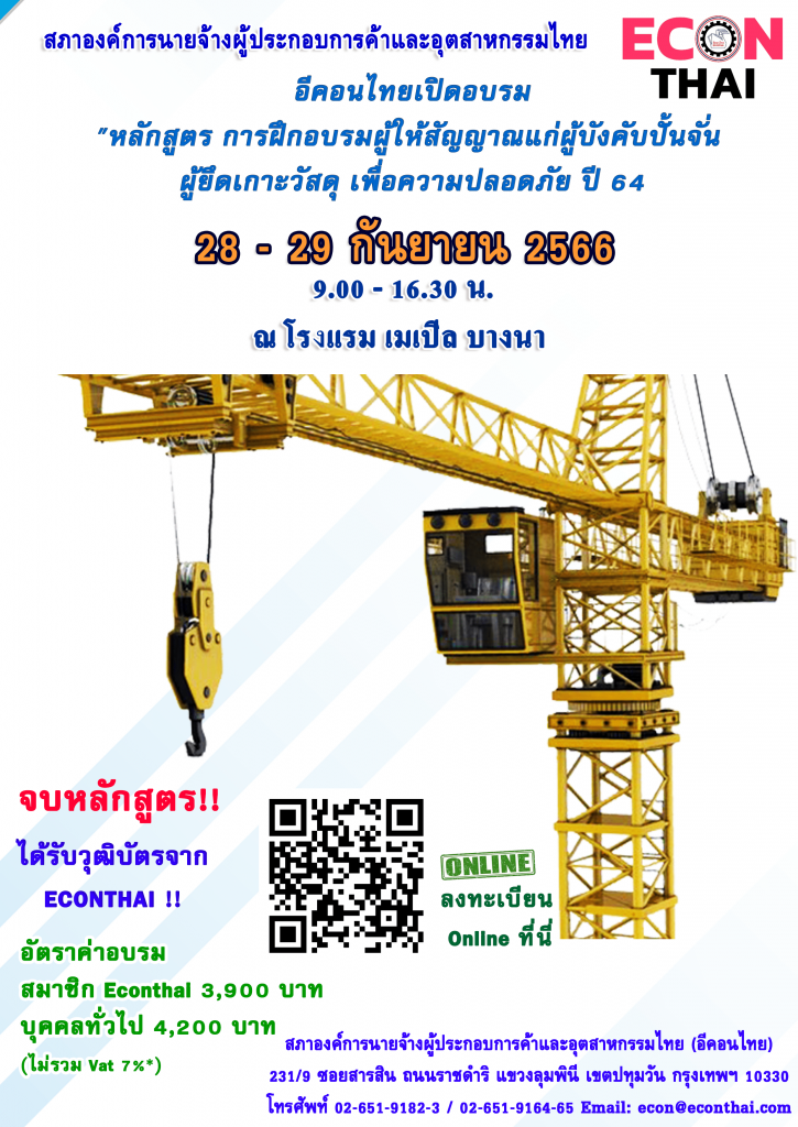 ✨️หลักสูตร การฝึกอบรมผู้ให้สัญญาณแก่ผู้บังคับปั้นจั่น ผู้ยึดเกาะวัสดุ เพื่อความปลอดภัย ปี 64