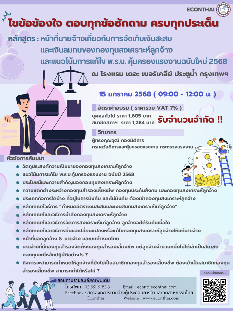 📍หน้าที่นายจ้างเกี่ยวกับการจัดเก็บเงินสะสม และเงินสมทบของกองทุนสงเคราะห์ลูกจ้าง และแนวโน้มการแก้ไข พ.ร.บ.คุ้มครองแรงงานฉบับใหม่ 2568