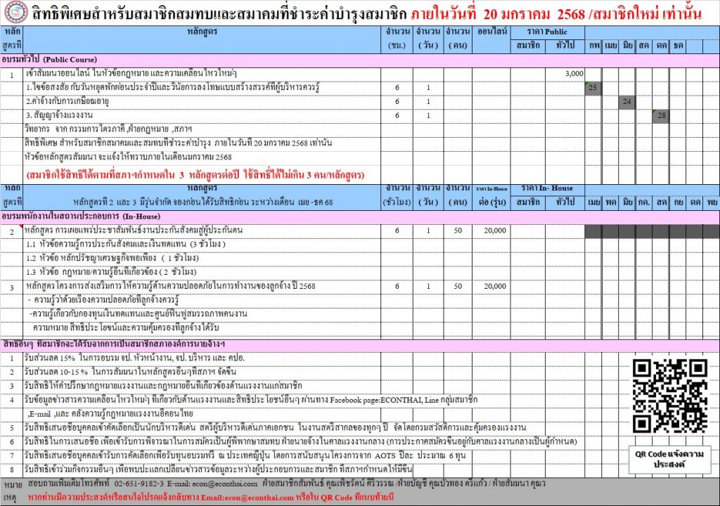 เรียนท่านสมาชิก ตามที่ได้แนบตารางสิทธิพิเศษสำหรับสมาชิกที่จ่ายค่าบำรุงภายใน 20 มกราคม 2568 ท่านสามารถแจ้งความประสงค์ที่ท่านสามารถใช้สิทธิได้ตามตารางที่แนบลิงค์ท้ายนี้ โปรดระบุเรื่องที่ท่านสนใจและส่งกลับสภาฯ ตาม QR Code ที่สภาฯ แนบไว้ จักขอบพระคุณยิ่ง