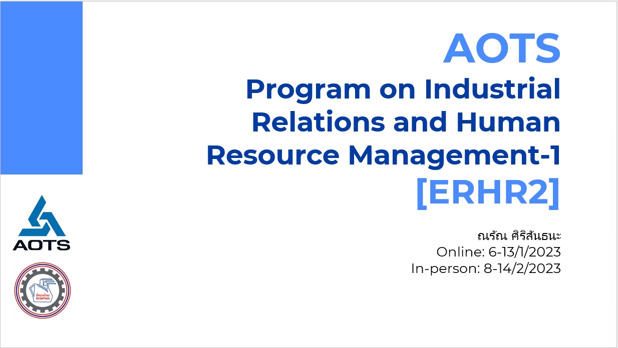 Program on Industrial Relations and Human Resource Management-1 (ERHR) โดย ดร.ณัณ ศิริสันธนะ