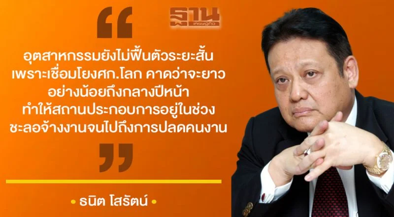 นายธนิตมองอีกว่าโดยภาพรวมภาคอุตสาหกรรมจะยังไม่สามารถฟื้นตัวได้ภายในระยะสั้นเพราะเชื่อมโยงกับเศรษฐกิจโลกซึ่งคาดว่าจะยาวนานอย่างน้อยไปถึงกลางปีหน้า ทั้งหมดเป็นปัจจัยสำคัญที่ทำให้สถานประกอบการภาคเอกชนอยู่ในช่วงชะลอการจ้างงานจนไปถึงการปลดคนงาน