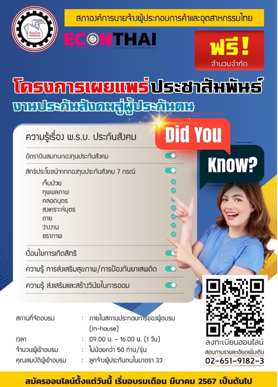 ฟรี!!! สำหรับสมาชิกสภาองค์การนายจ้างฯ (อีคอนไทย)
