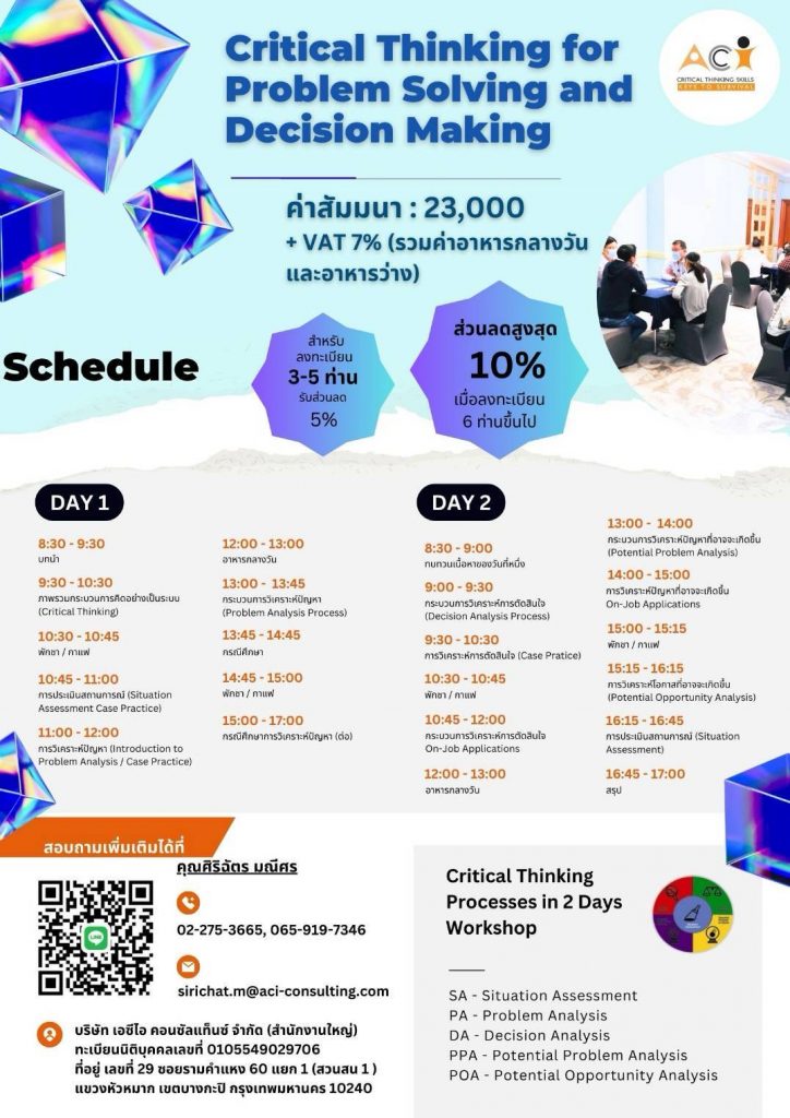 👉 พบกับ หลักสูตร Critical Thinking for Problem Solving And Decission Making
