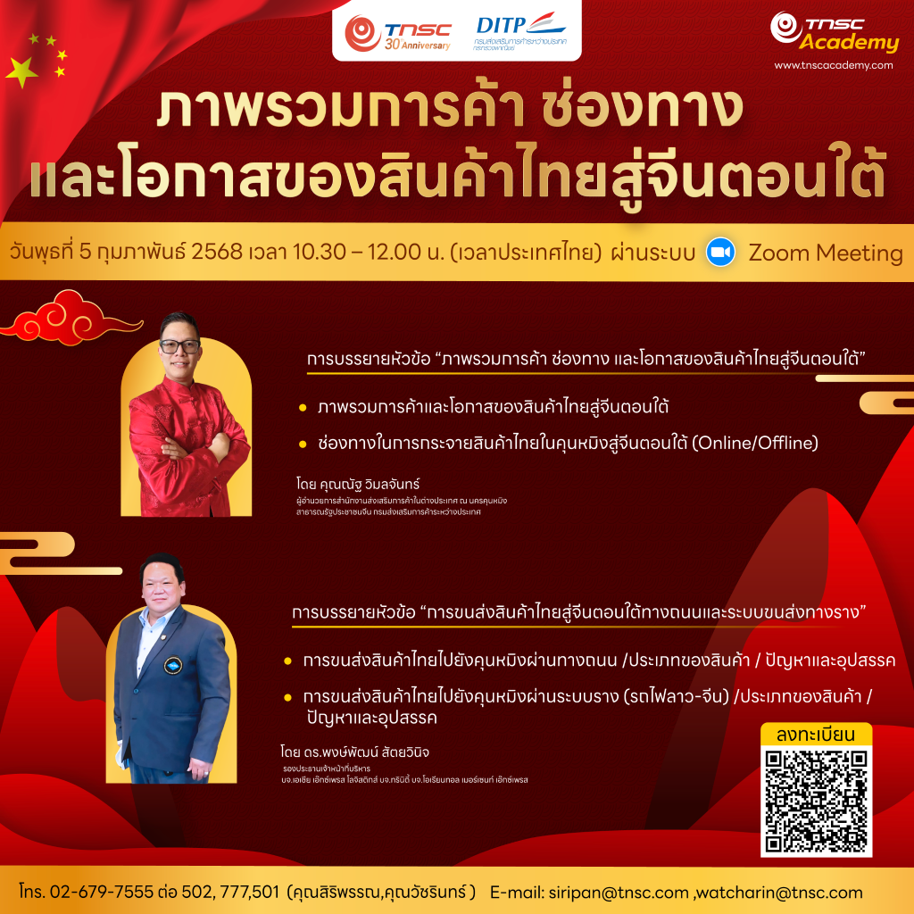 ในวันพุธที่ 5 กุมภาพันธ์ 2568 เวลา 10.30 – 12.00 น. (เวลาประเทศไทย) ผ่านระบบ Zoom Meeting
